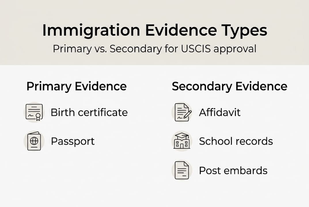 Before you start gathering documents, you need to understand what USCIS actually expects. Not all evidence carries the same weight, and knowing the difference between primary and secondary evidence can save you from costly mistakes.