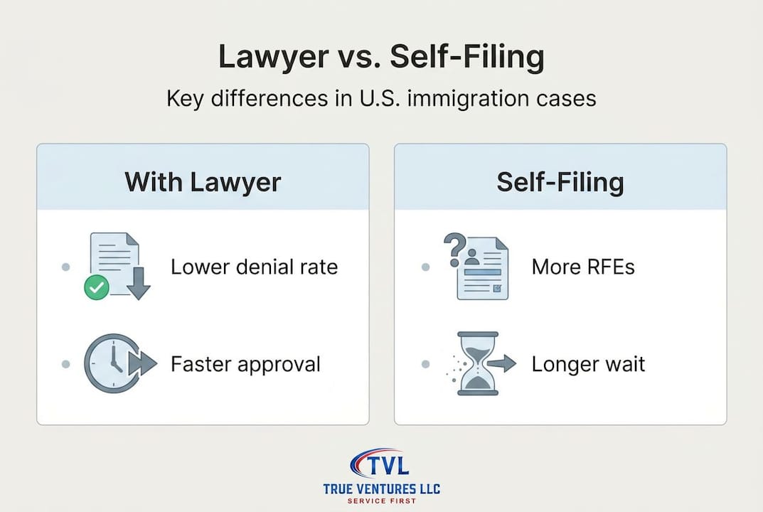 Lawyers handle complex law, prevent filing errors, respond to RFEs and legal notices, and track policy changes to give you the best possible chance of approval. They also catch hidden eligibility issues that most applicants never see coming.